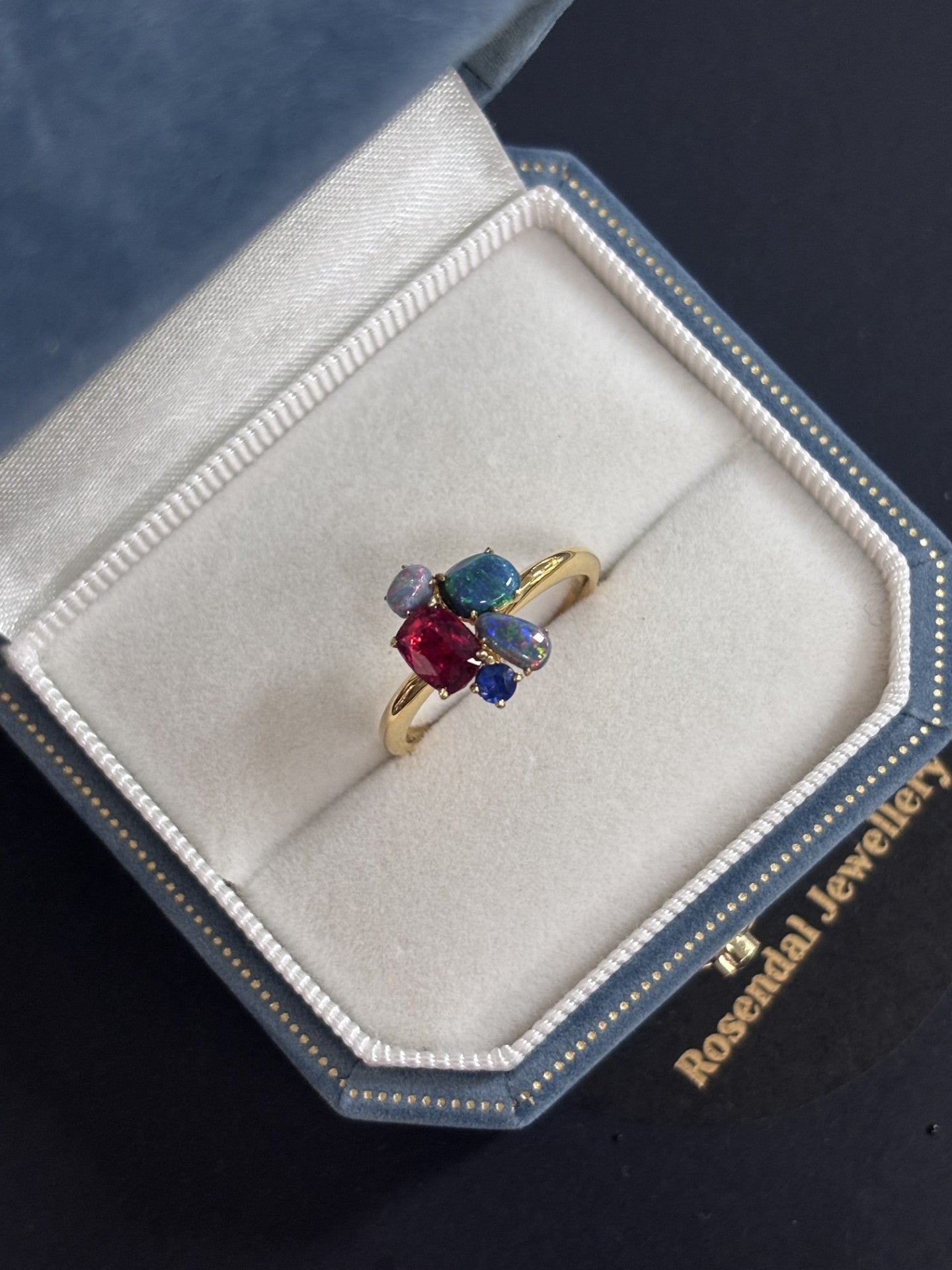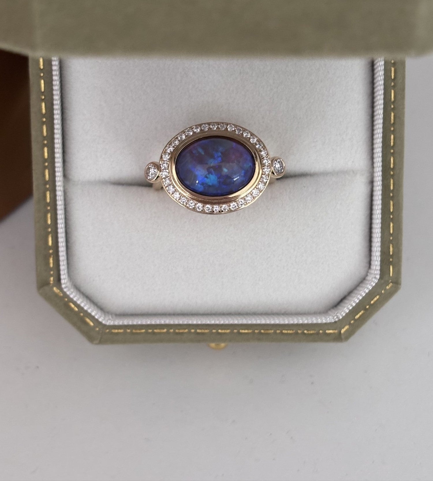 1.5ct Australian Opal| Natural Diamond Ring | 18kt Yellow Gold