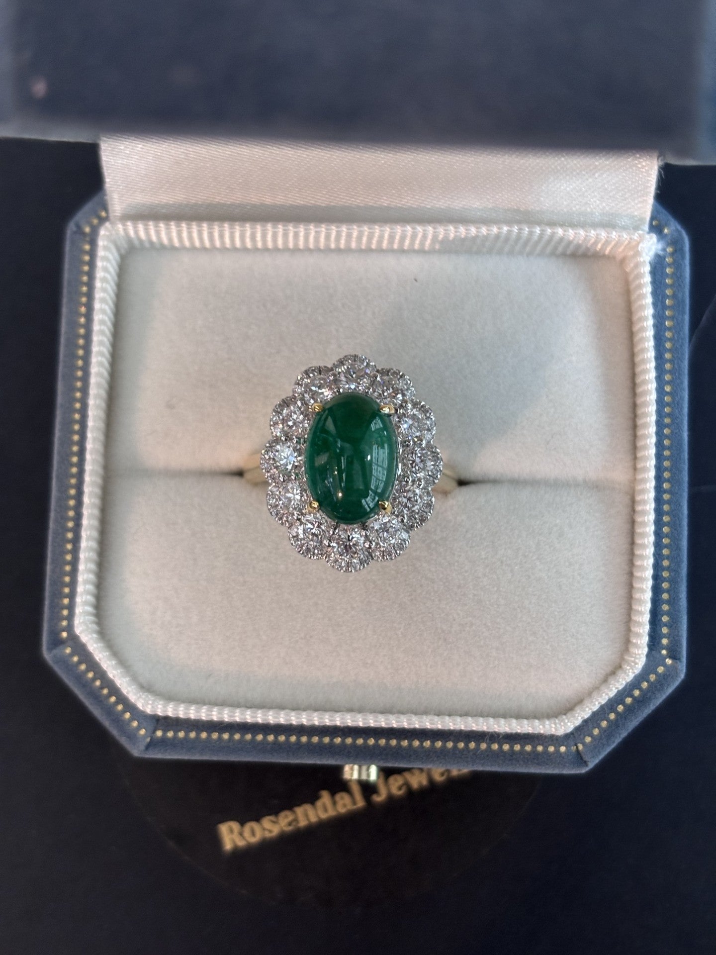 3.3ct Cabochon Emerald| Lab-Grown Diamond | 18kt yellow gold