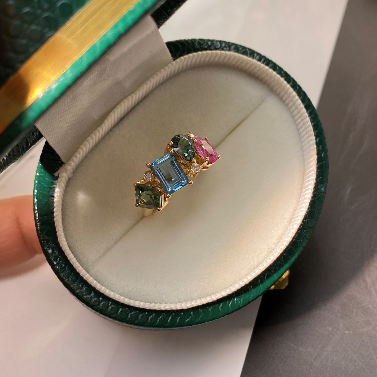 1.61ct Lagoon Colour Tourmaline | 18kt yellow gold | Natural Diamond